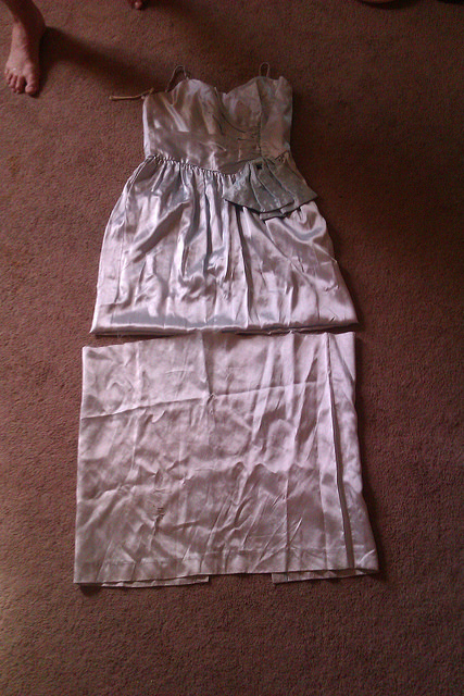 The week before our trip I was able to attend the theatre awards at my alma mater, Fairmont State. These awards are called the Pappy’s after a member of the faculty from some years ago. While I had plenty of dresses that could work, I hadn’t refashioned anything in a while and knew I could fulfill part of my MMM14 pledge while I was at it. Unfortunately I was so excited I only have one before picture, after a cut had been made…