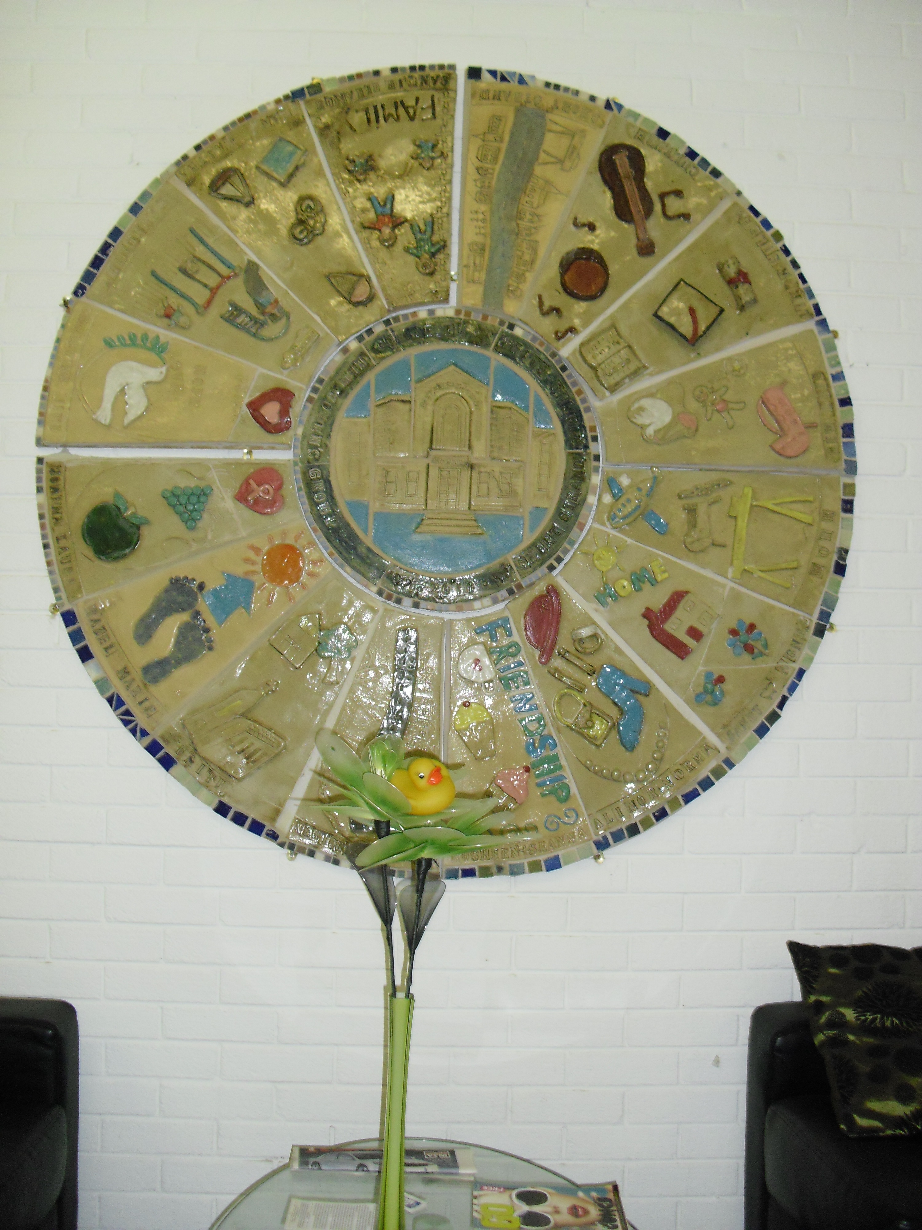 While our group was in Northern Ireland we got many chances to listen to local people talk about life during The Troubles and the rebuilding after the Good Friday Agreement.  The women’s group that made the sculpture pictured above started as a group made up of nearly all Protestants; however their group was challenged to build a relationship with another women’s group that was mainly Catholic.  The group tried many new activities, including a writing class in which many members contributed works to a book that they presented to our class.  After listening to several of their poems we got to ask questions.  It was amazing hearing about the everyday problems of not only life during The Troubles but of the rebuilding afterwards.  The women talked about how they felt when they first talked about merging the two groups, of how nervous they were and that they didn’t know if they could get along with each other…ironic considering they now meet twice a month.